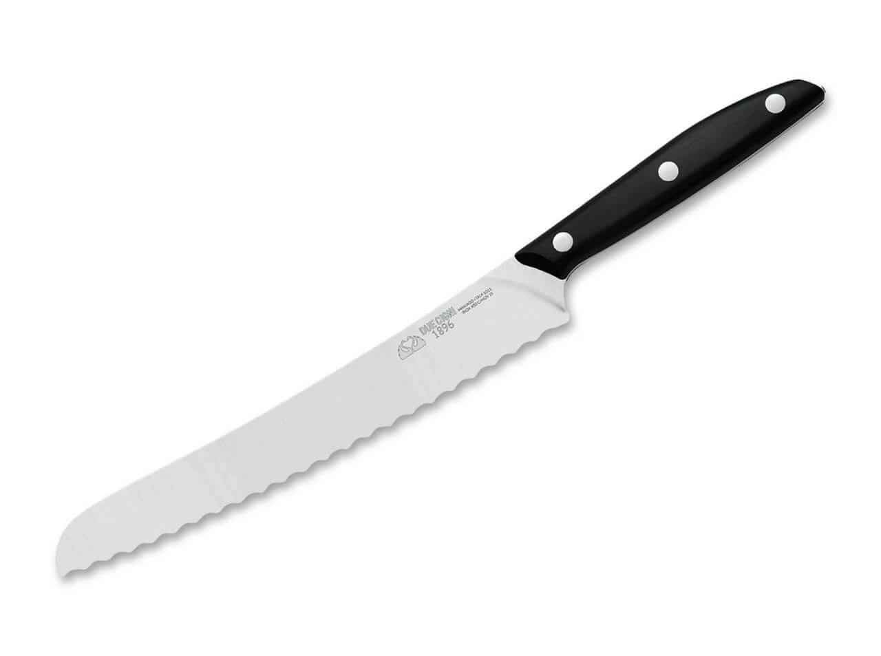 Das Brotmesser zeichnet sich durch den speziellen Wellenschliff aus, sowie durch die sehr lange Klinge. Neben Brot lassen sich damit natürlich auch andere harte Lebensmittel besonders gut schneiden. Im Gegensatz zum klassischen Küchenmesser werden diese beim Schneiden mit dem Brotmesser nicht zerdrückt.