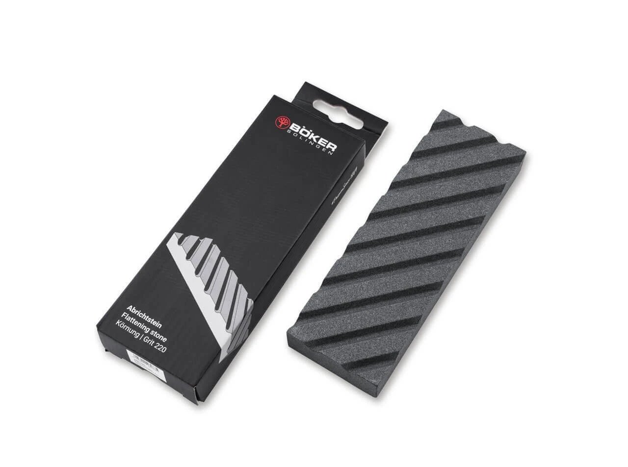 Abrichtstein zum Planen/Abrichten von Schleifsteinen mit Querrillen zur Aufnahme von Abrieb. Sowohl Natur- als auch synthetische Schleifsteine werden beim Schleifen mit der Zeit auf der Nutzfläche hohl, es entsteht eine Wölbung nach innen. Der Abrichtstein wird verwendet um ein plane/gerade Oberfläche herzustellen bzw. zu erhalten. Als zweite Produktanwendung lässt sich mit dem Abrichtstein auch Schleifschlamm von einem bestehenden Schleifstein aufreiben. Beim Schleifen mit Schleifschlamm wird mit sogenanntem „rollendem Korn“ geschliffen. Mit Schleifschlamm kann die Schärfe bei gleicher Körnung schneller und feiner erzeugt werden als mit der bloßen Schleifsteinoberfläche. Für welche Schleifsteine eignet sich das Produkt? Geeignet für japanische Wassersteine jeder Körnung sowie weich gebundene Natursteine (z.B. Belgischer Brocken/Coticule). Nicht geeignet für Arkansas-Steine, künstliche Keramik-Steine und Diamant-Schleifplatten. ränken Sie Schleifstein und Abrichtstein mit ausreichend Wasser. Reiben Sie Schleif- und Abrichtstein mit Kreisbewegungen gegeneinander bis das gewünschte Ergebnis erreicht ist. Halten Sie beide Steine während des gesamten Vorgangs nass. Lieferbar ab April 2023. Maße Nutzfläche: 180 x 60 mm. Höhe 25 mm.