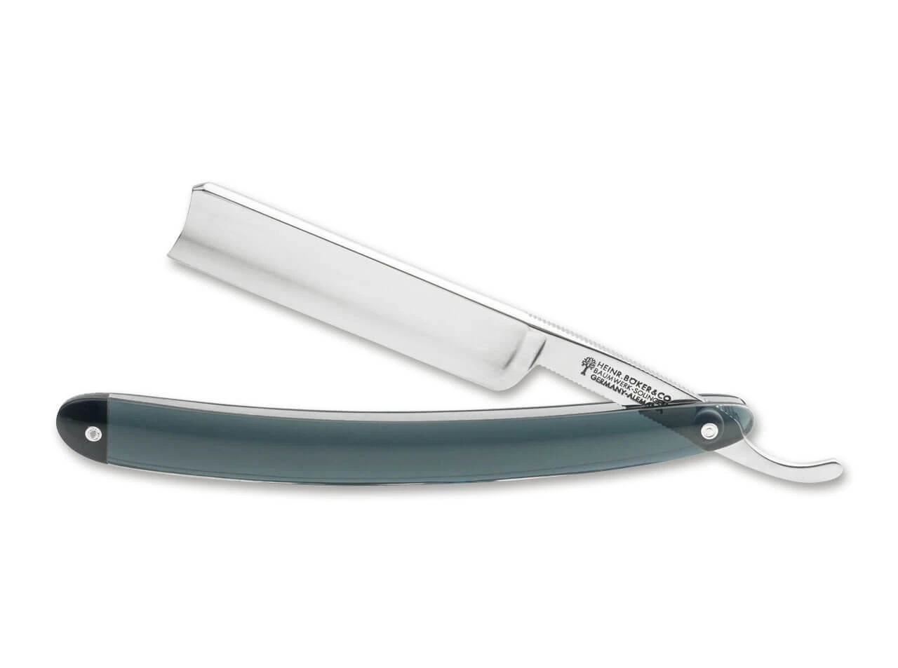 Die transparent schimmernden Griffschalen aus blauem Acryl kennzeichnen das streng limitierte Böker Aero LTD. Die Klinge besteht aus besonders schnitthaltigem, nicht rostfreiem Kohlenstoffstahl und wird extrahohl mit Wall geschliffen. Mit authentischem Böker Stempel im Klingengang, Echtheitszertifikat und historischer Verpackung. Handgefertigt in der Böker Messer-Manufaktur Solingen.