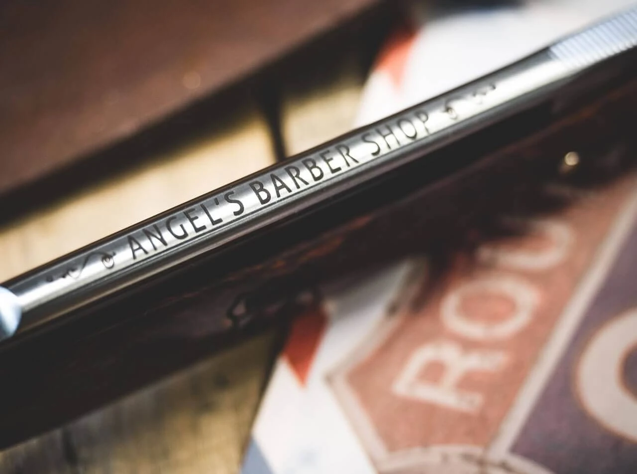 Das imposante Böker Angel Delgadillo Route 66 beeindruckt mit seiner 7/8 Zoll breiten Klinge aus Kohlenstoffstahl, die durch ihre Größe und den Extrahohlschliff besonders sanft über die Haut gleitet. Als besonderes Highlight wurde hier der von Intarsien eingerahmte Schriftzug „Angel’s Barber Shop“ auf den Klingenrücken gelasert, während die beidseitige Serrierung am Klingengang und das edle Satin Finish die Optik der Rundkopfklinge vortrefflich abrunden.