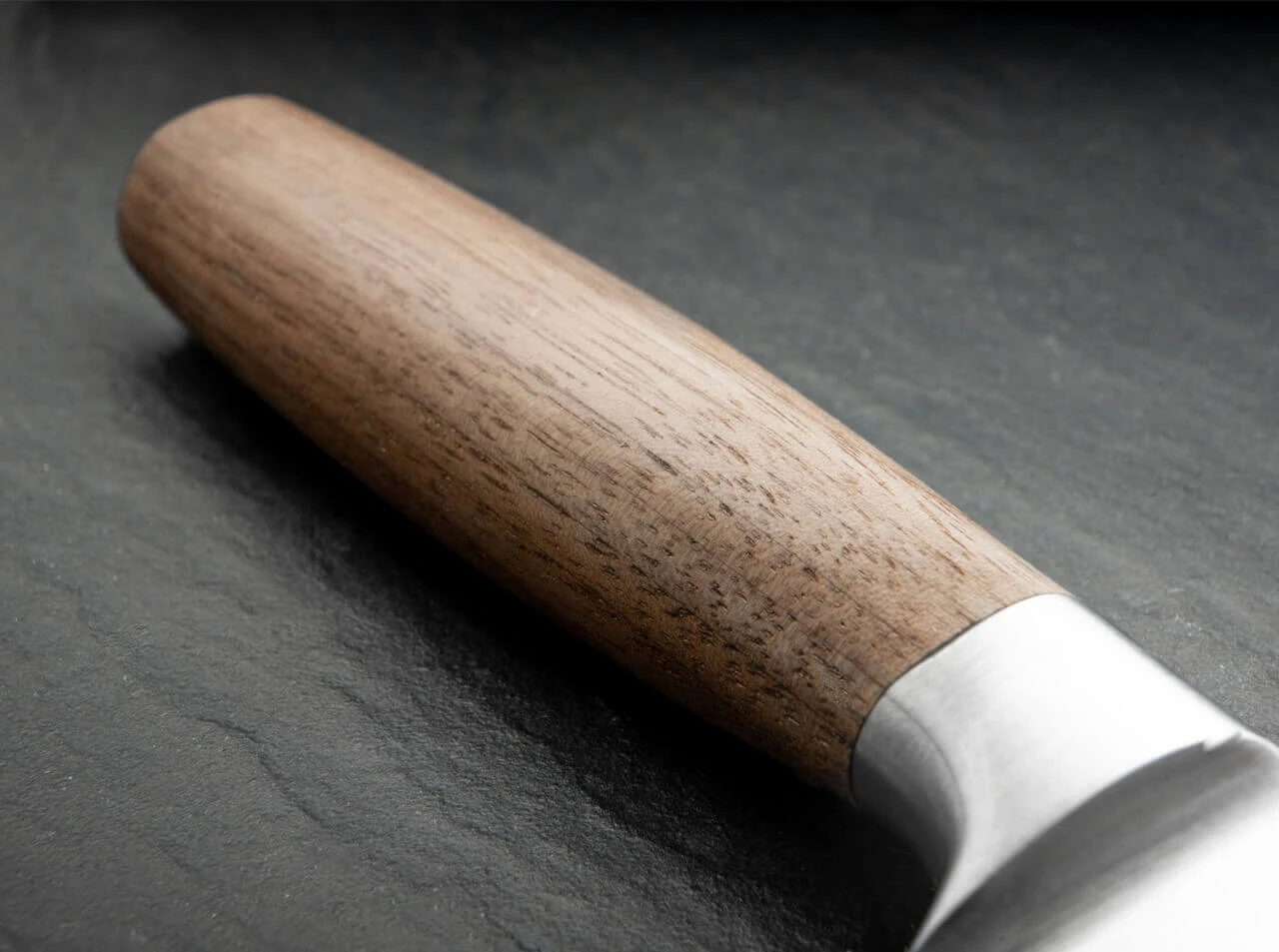 Die neue Kochmesser Serie Böker Core wurde aus qualitativ hochwertigen Materialien hergestellt. Die Klinge der Böker Core Messer ist aus X50CrMoV15–Stahl gefertigt. Hierbei handelt es sich um deutschen, hochwertigen Stahl, der sich hervorragend zur Herstellung von Küchenmessern eignet. Die Messer werden von Hand in Solingen geschmiedet und auf 58 HRC gehärtet. Anschließend wird die Klinge mit einem satinierten Finish und einer scharfen, polierten Schneide versehen. Der Rücken jeder Klinge läuft etwas rund. Es gibt also keine scharfen Kanten, alles ist schön abgerundet. Dadurch ist jedes Messer in verschiedenen Positionen angenehm zu handhaben. Der schöne Griff aus Walnussholz schließt nahtlos an die Klinge an, dadurch haben Bakterien keine Chance. Walnussholz ist eine schöne Holzsorte mit einer natürlichen Zeichnung.