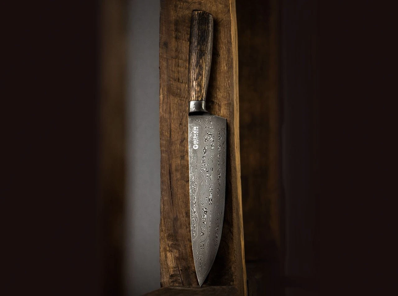 Die Klinge ist ein besonderer Leckerbissen: Der handgeschmiedete rostfreie Damast weist nicht nur ein atemberaubendes Muster auf, sondern besticht auch mit seiner hohen Zähigkeit und Härte (60 HRC), die das Böker Core Damast nicht nur zu einem exklusiven Sammlerstück macht, sondern auch eine überragende Leistungsfähigkeit für sämtliche Schneidaufgaben in der Küche garantiert.