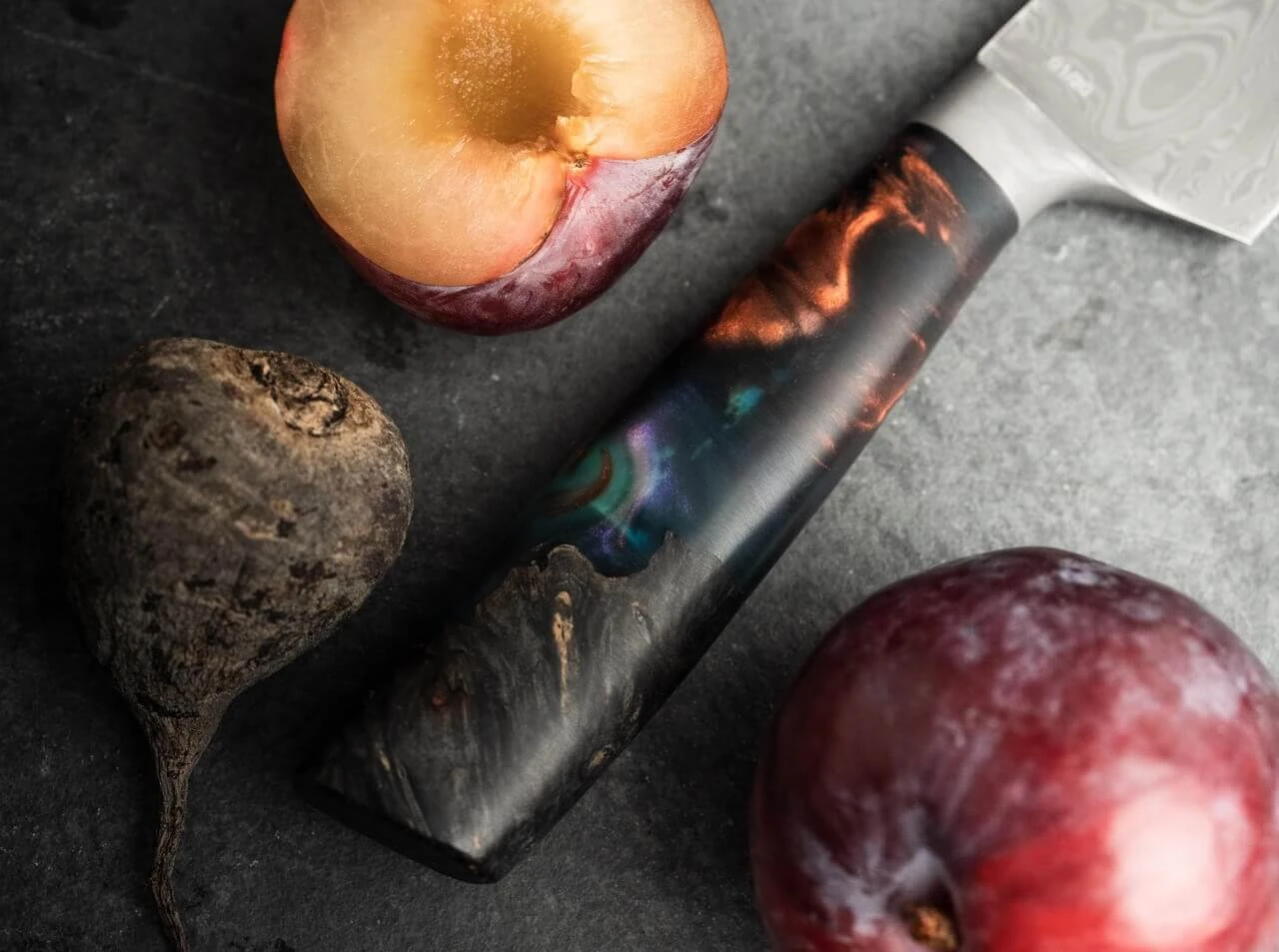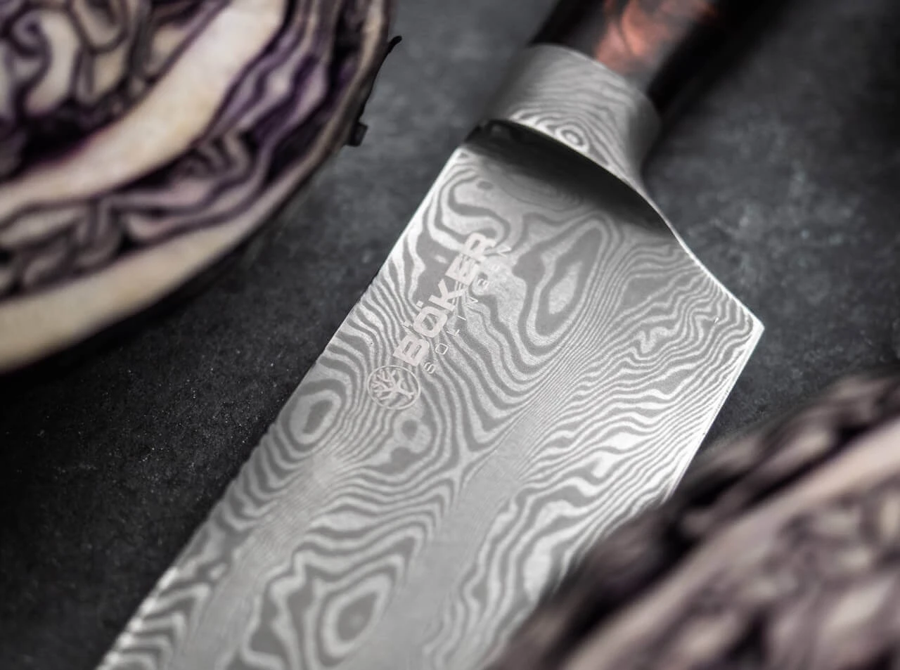Der Griff des Chefmessers steht der Klinge optisch und funktional in Nichts nach. Der kosmische Tiefeneffekt erinnert an die beeindruckenden Farben ferner Galaxien und wird durch die Stabilisation von zertifiziert importiertem Amboinaholz mit farbenreichen und teilweise semitransparenten Harzen hervorgerufen. Die Auslieferung des weltweit auf nur 20 Stück limitierten Kochmessers erfolgt mit individueller Seriennummer in einer lederbezogenen Geschenkverpackung und mit Echtheitszertifikat. Handgefertigt in der Böker Messer-Manufaktur Solingen.