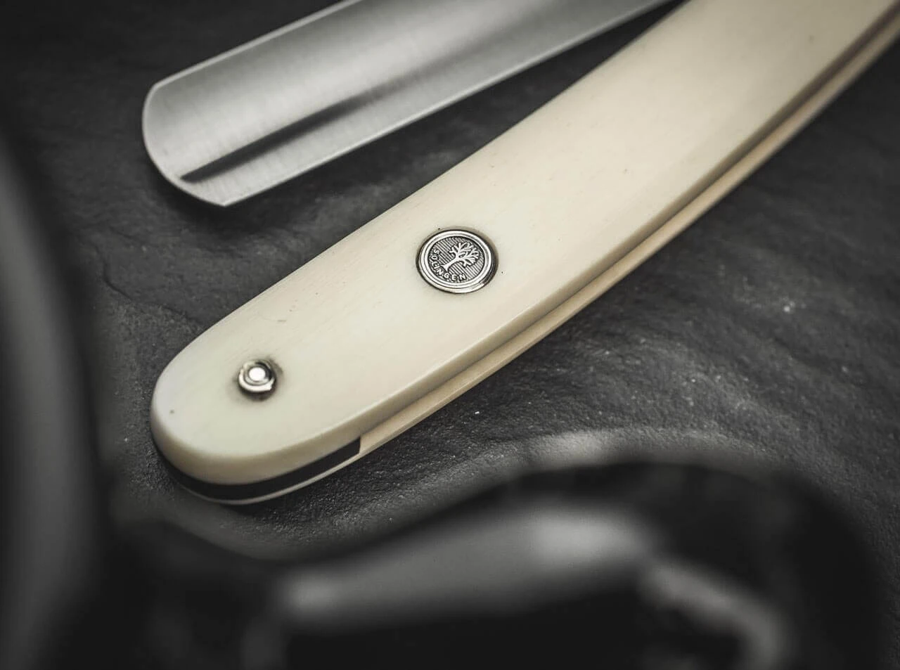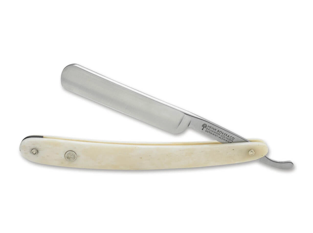 Das außergewöhnliche und streng limitierte Böker Polaris LTD mit Spanischem Kopf in der Größe 4/8 Zoll überzeugt vor allem bei der Rasur der Konturlinien. Die Klinge besteht aus klassischem, nicht rostfreien Kohlenstoffstahl der besonders schnitthaltig ist und wegen seines extrem feinen Gefüges nach wie vor die erste Wahl für hochwertige Rasiermesser ist. Neben der Klinge begeistert auch das griffige Heft aus echtem Knochen, das einen stimmigen Kontrast zum schwarzen Zwischenstück bildet. Mit authentischem Böker Stempel im Klingengang, Echtheitszertifikat und historischer Verpackung. Handgefertigt in der Böker Messer-Manufaktur Solingen.