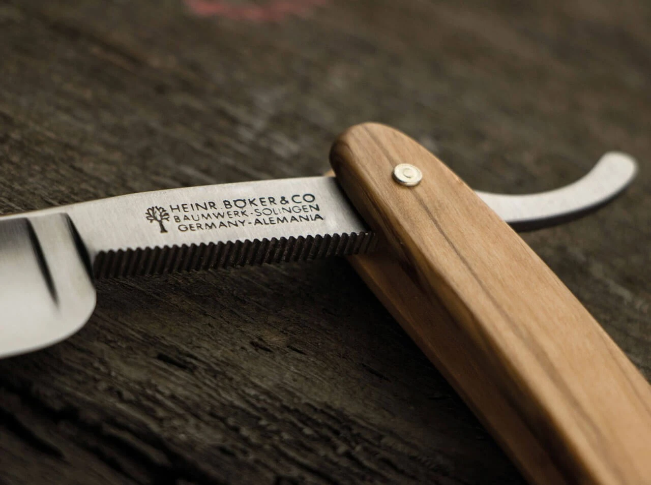 Die Beschalung aus handverlesenem heimischen Olivenholz verleiht dem The Celebrated Olive seinen besonderen Akzent und begeistert mit einer lebhaften Maserung. Veredelt ist dieses Modell mit einer partiellen Vergoldung und dem klassischen Böker-Baumsymbol, welches filigran in das Holzheft eingearbeitet wird. Der Klingenrücken ist zusätzlich mit feinen Ziselierungen kunstvoll verziert.